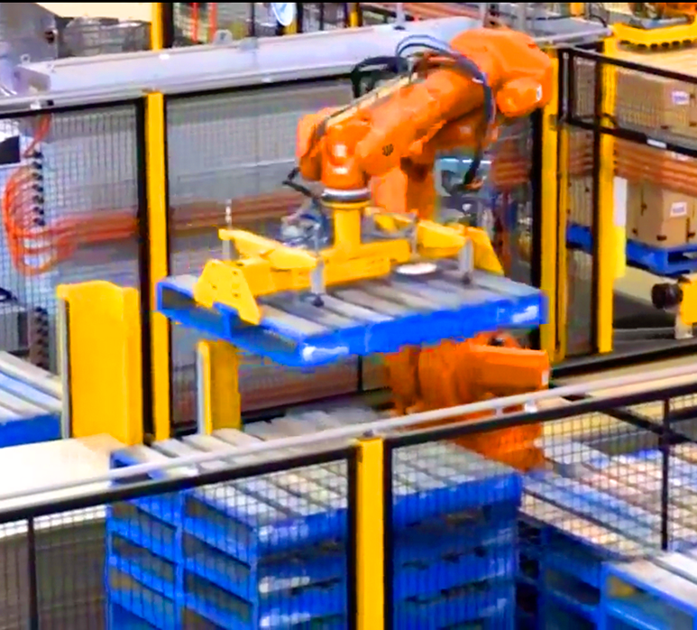 Paletizačný robot vykonáva nakladanie a vykladanie súčiastok, škatúľ alebo iných položiek do alebo z paliet.