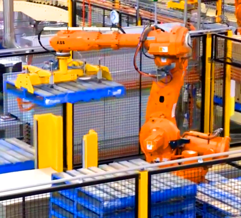 Paletizačný robot vykonáva nakladanie a vykladanie súčiastok, škatúľ alebo iných položiek do alebo z paliet.